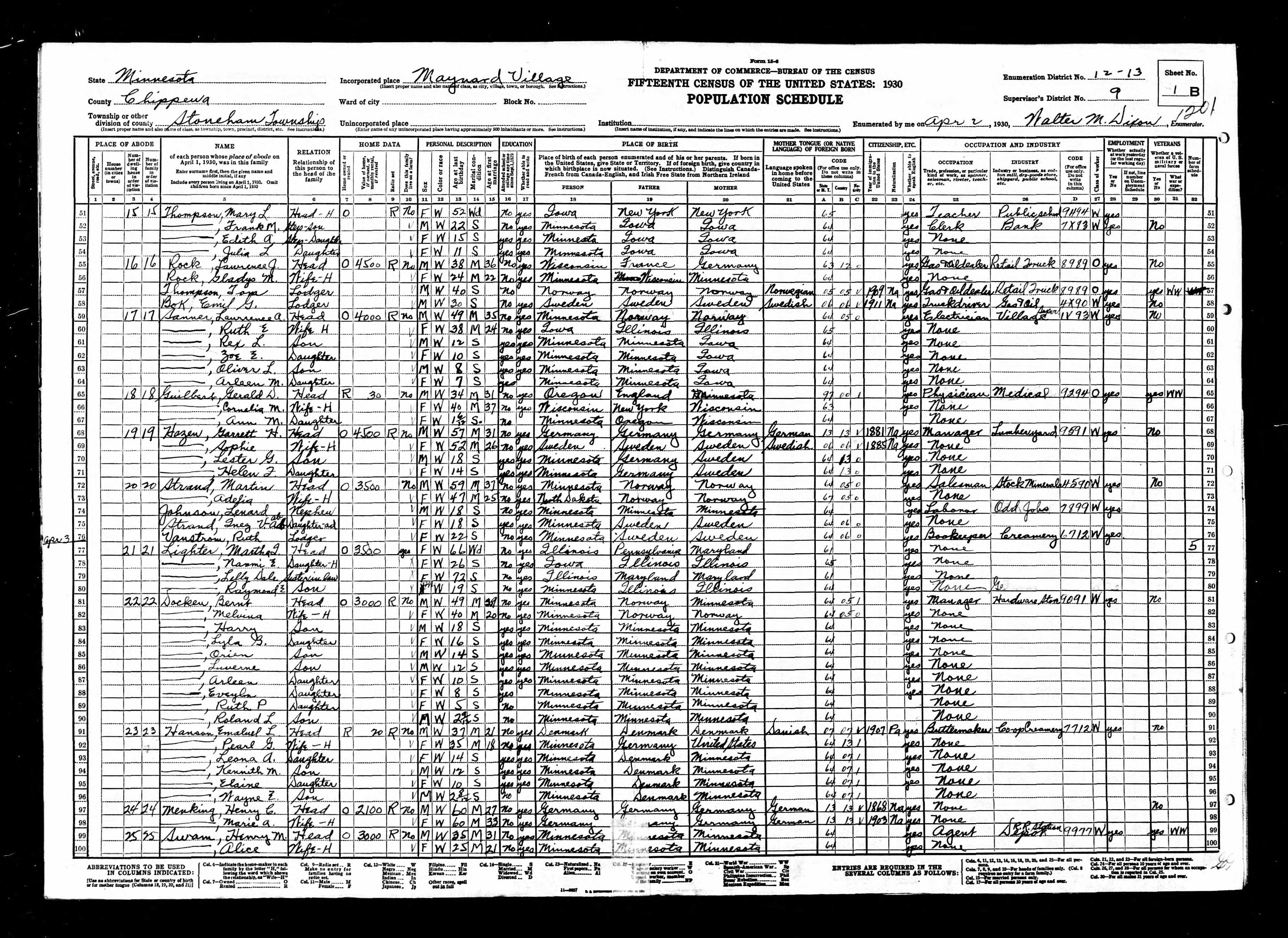 Her first census was the 1930 census for Maynard, Minnesota.