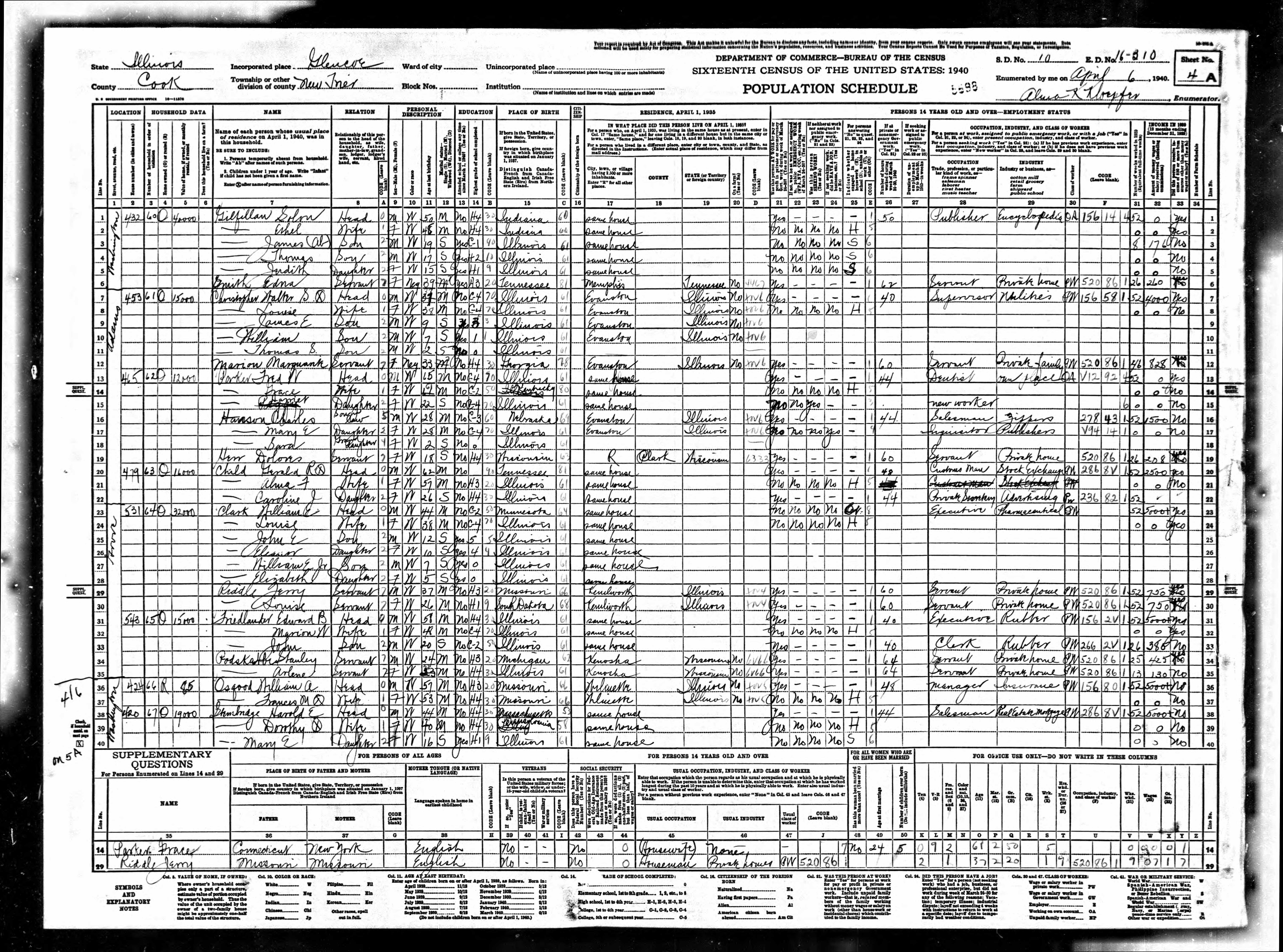 His first census was the 1940 census of New Trier, Illinois, where he lived with his parents, two brothers, and a servant.