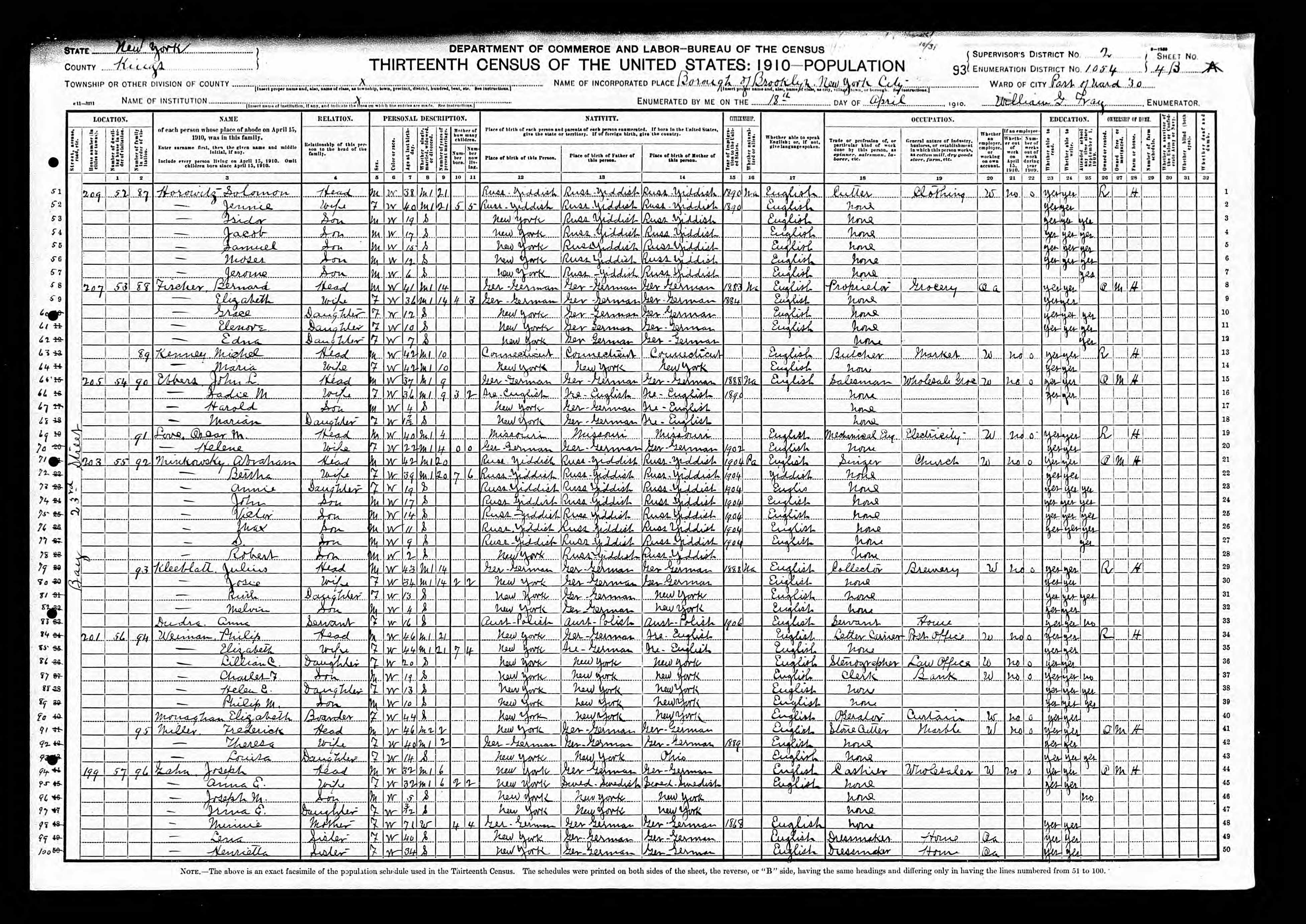 His first census was the 1910 census for Brooklyn. He is listed as Jerome. His brothers Moses (Moe) and Samuel (Shemp) are also listed.